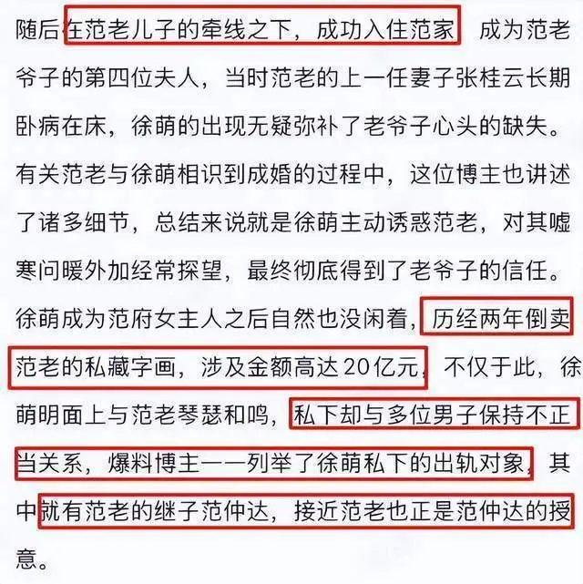 还有人说,徐萌婚内不老实,早已经出轨了继子范仲达,根本不是外界传言的“体贴关爱范曾”。