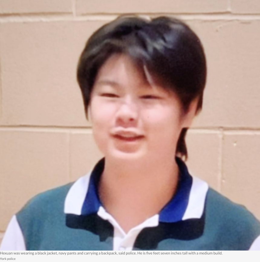 多伦多北面的约克区警察局今天发出一份寻人启事,约克区警局第五分局刑事调查科的调查人员正在寻求公众协助,寻找一名来自万锦市的14岁失踪男孩。